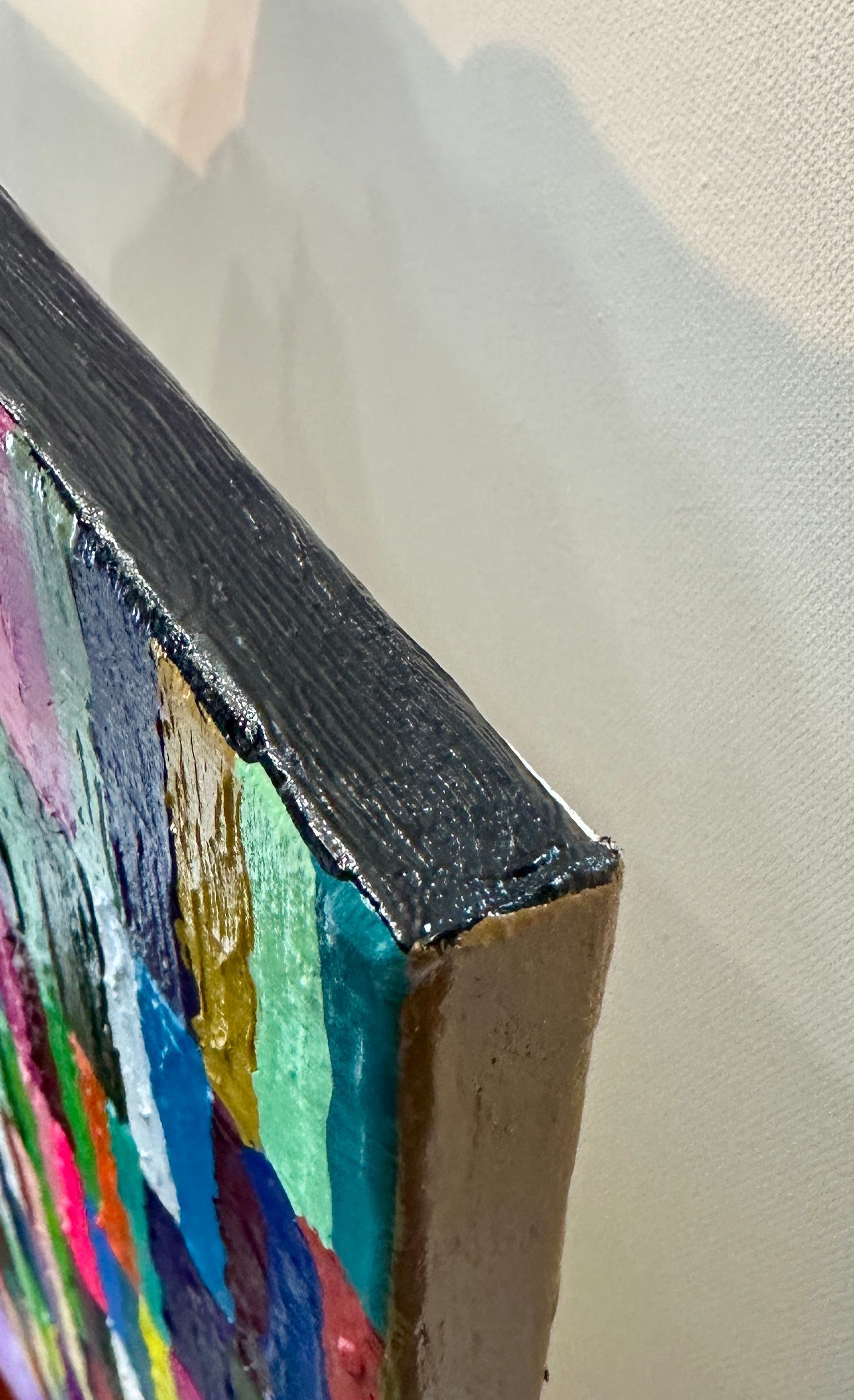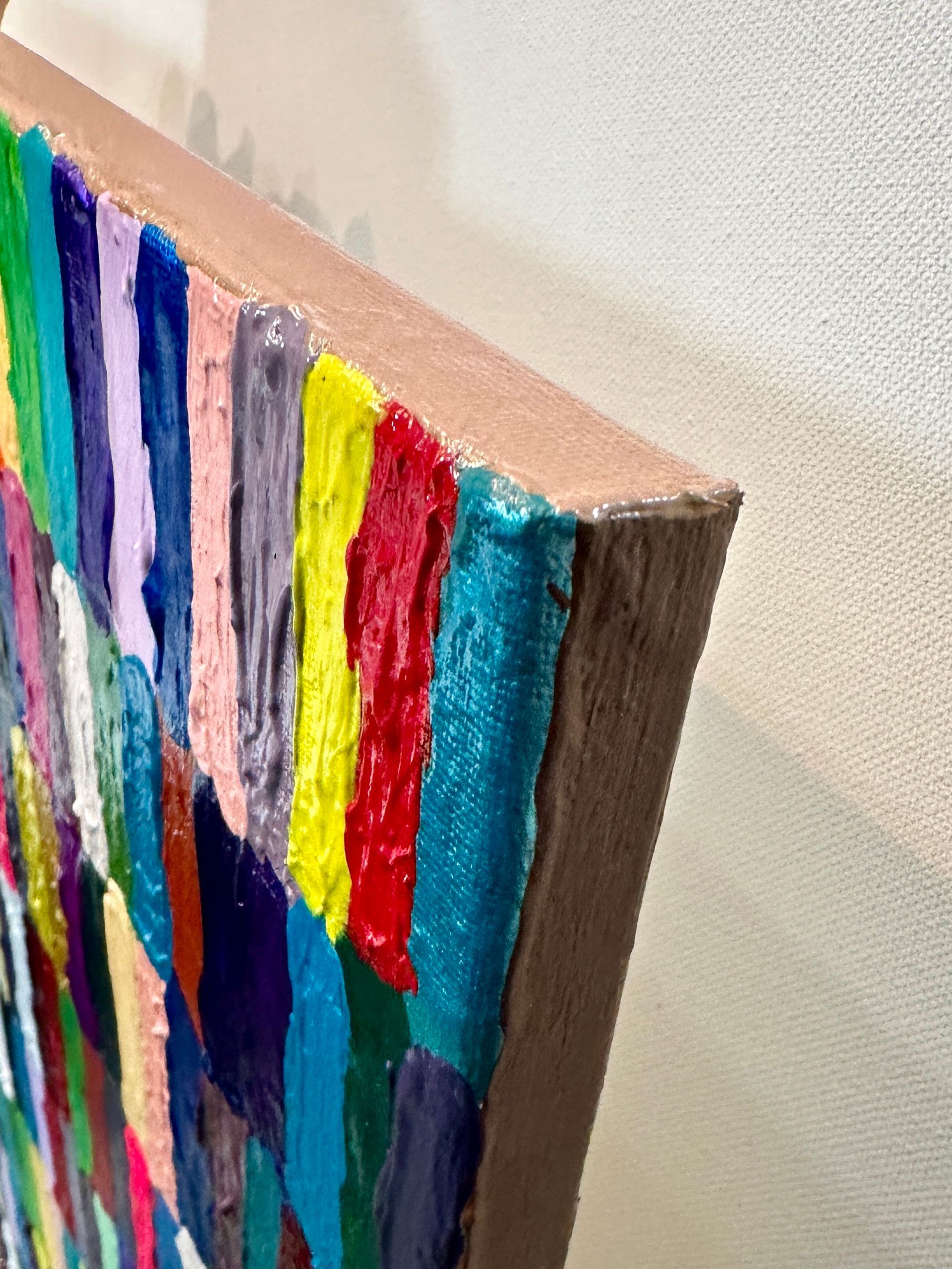 The sides of this painting are painted in various colours of the skin.