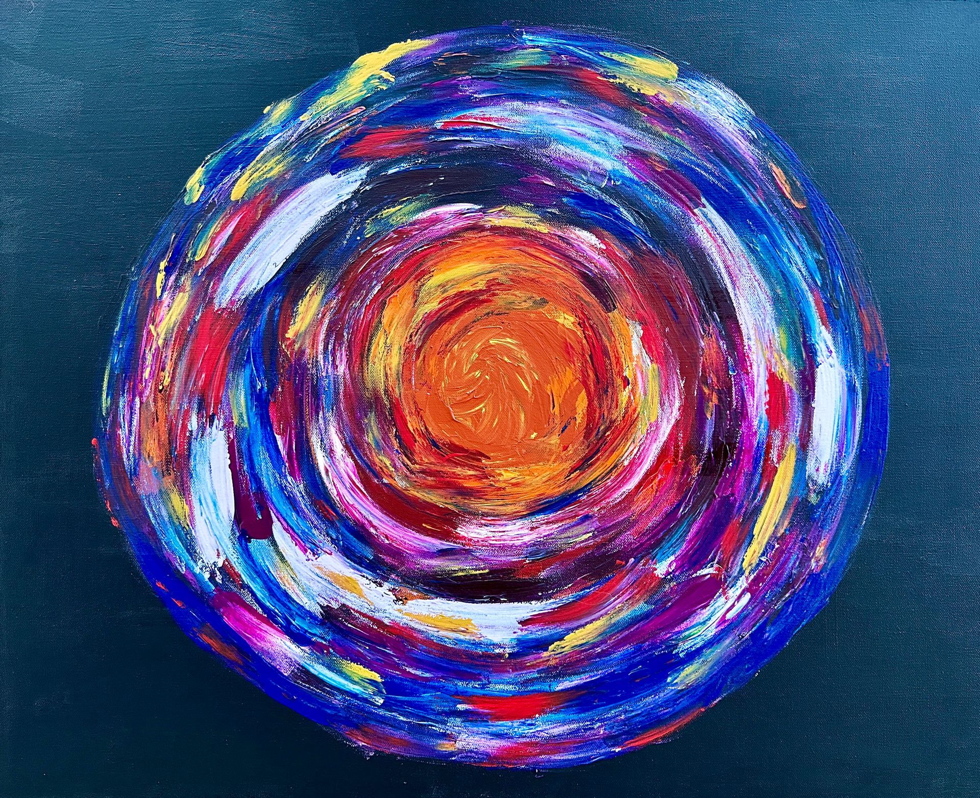 36" X 48" acrylic palette-style on gallery canvas. Earth and alternate planet's flow of energy. $3,456 Cdn.