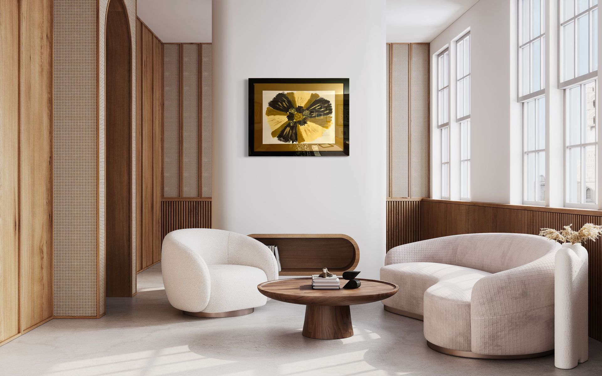 Acrylic on watercolour paper framed in silver metal with silver-grey mat 30.5” X 37”. $1,465 Cdn.