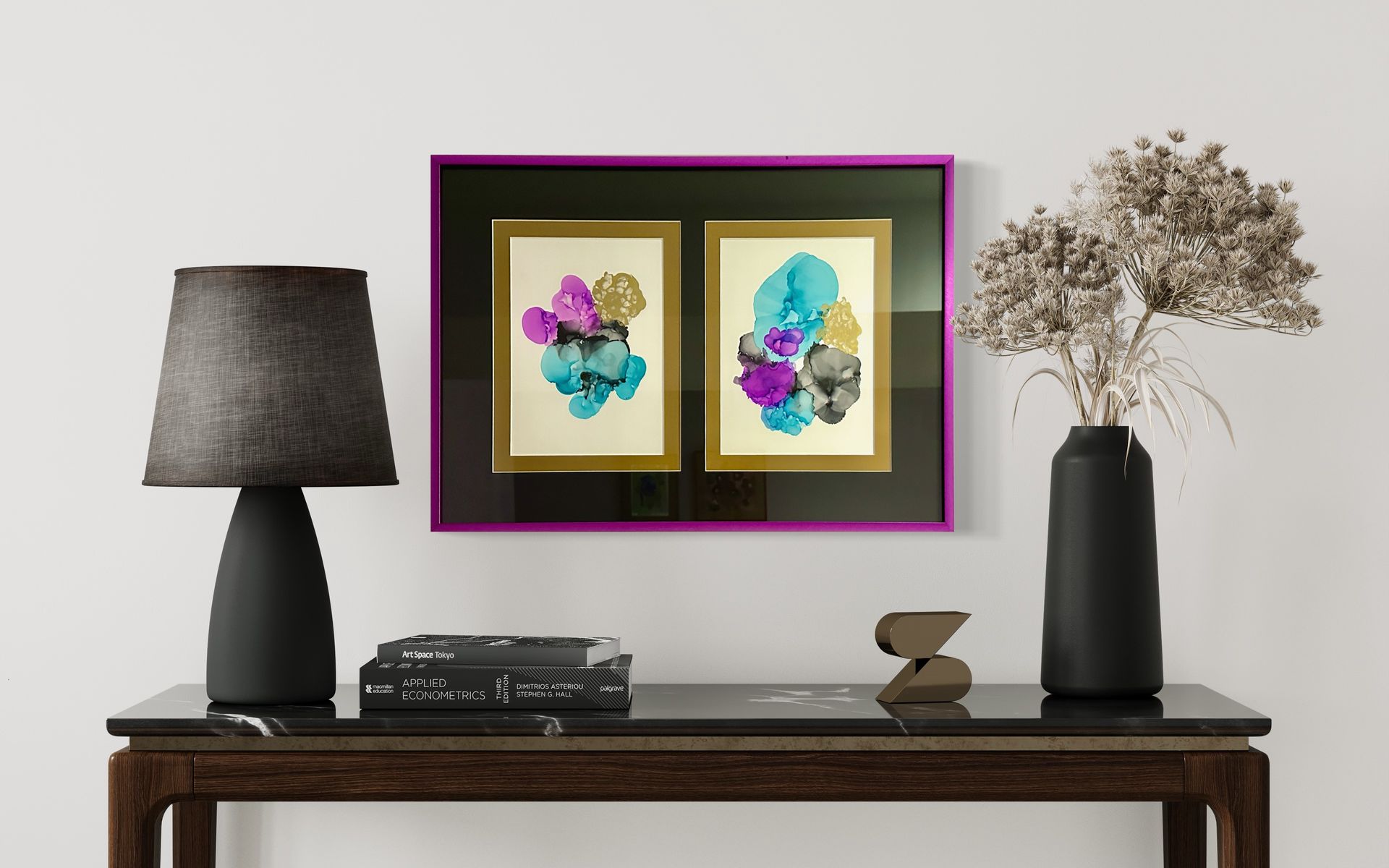 18" X 24" acrylic pour on canvas. Unframed (virtual frame shown) $865 Cdn.